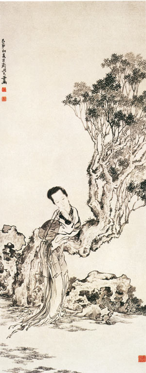 (右:纨扇仕女图)那棵树应该是在无锡顾山。我却一直以为在嘉兴西塘。像张爱玲对英格兰和法兰西颠倒了印象一样,对昭明太子萧统手植的红豆树所在的位置,我一直无法纠正自己错误的认识。就像一千四百多年前萧郎和慧娘的一见钟情,明知是错了,也只有一路错下去。 应该是杏花烟雨的江南,春草漫过河堤的时节发生的爱情。原谅我们说相遇,今人或古人,所有的缠绵悱恻都愿和烟雨、江南沾染丝丝缕缕的联系。 真的是大俗,可是仔细思量着,却又大雅。当中自有一番刚硬的道理在,不尽是文人骚客,痴男怨女的婉转凄凉。 老子说:“上善若水,水善利万物而不争。”是说水的因时因势而起,无为而为。水是至柔至刚之物,来去自如,滋养万物,亦同佛家说“缘起缘灭”,总不强求万物羁留,动则氤氲有致风生云起,静则坚毅如山石。至于人和人之间的情缘来去,用什么形容也不如水贴切。 人一旦爱了,一颗心就能百转千回,像江南水乡的小河道,弯弯曲曲间衍出无数缠绵来;一旦不爱了,亦有黄河之水天上来的决裂和汹涌。 现在,我们回到他们相遇的时刻,去见证那场烟花的绽放。那一天,他许是腻了宫娥翠袖,腻了丝竹箜篌,腻了伏案编书。他出游,信马由缰,到郊外寻花问柳。那可是真的寻花问柳,他是一等一的才子,从小天资聪敏,过目不忘,来顾山隐居是为了编集《昭明文选》,不似乾隆下江南的附庸风雅。 走到一条清溪边,他觉得口渴起来,正好迎风送来茶香,抬头看见前面一座小小的茶坊,他便信步走了进去。那当垆卖茶的女子闻声转过身来。但见她云鬓乌黑,生得面若桃花,穿着布衣也难掩风流,他心里一喜。那茶,未曾喝到嘴边,却已先浸得人眼明心亮。 她捧了一盏茶过来,浅笑盈盈。这一笑,似已耗尽一生等待。她与他正像白娘子与许仙西湖初遇,相逢却似曾相识,未曾相识已相思。 他们这场相遇叫我想起了一段绝美的台词,那段话是这样说—— 野花迎风飘摆,好像是在倾诉衷肠;绿草凄凄抖动,如无尽的缠绵依恋;初绿的柳枝轻拂悠悠碧水……看这一江春水,看这清溪桃花,看这如黛青山,都没有丝毫改变,也不知我新婚一夜就别离的妻子是否依旧红颜? 对面来的是谁家女子,生得满面春光,美丽非凡! 这位姑娘,请你停下美丽的脚步,你可知自己犯下什么样的错误? 这位官人,明明是你的马蹄踢翻了我的竹篮,你看这宽阔的道路直通蓝天,你却非让这可恶的畜生溅起我满身泥点,怎么反倒怪罪是我的错误? 你的错误就是美若天仙,你婀娜的身姿让我的手不听使唤,你蓬松的乌发涨满了我的眼帘,看不见道路山川,只是漆黑一片;你明艳的面颊让我胯下的这头畜生倾倒,竟忘记了他的主人是多么威严。 春花软柳,佳人如玉,我想,昭明的心旌摇曳也应该和剧中人一样。 此后,他便天天来,有时也着宫使接了她,去他的读书台上。他已经遣散了身边的宫娥,她就成了灯下伴读添香的红袖,在他疲累时奉上香茶一盏,那是虎跑泉的水沏出的清冽情意。有时,她也会启丹唇为他弹唱解乏,吴侬软语,一曲歌毕,他不禁叹道:“有此清歌做伴,何必丝竹污耳呢?”又一笑,“有慧如相伴,何用姬妾成群?” 她明白他是借机向自己表明心迹。她笑笑,带着低低地哀伤:“萧郎……你是太子,这是无可奈何之事。” 萧统也笑了。他仿佛永远考虑不到这点,体察不到她的忧伤一般,抚着她的眉说:“我是太子,慧如,我是太子,你要信我。” 她点头,眼中凝聚着难以化解的忧伤。不是她不相信他,只是身份地位太过悬殊,宗教礼法的桎梏,由不得她去妄自天真。 待到《文选》编顶杀青,他终于要回京去。临别马上,他仍是豪情不减,手指远方道:“慧如,来日我要凤笙龙管,紫盖香车迎你回京。” 她站在马下凄凄地望向他,无语凝噎。半晌才轻轻地取出一物放在萧统掌心,道:“昔有妇人滴泪成血,化做相思豆,今以一双红豆付君,若君早归,妾当免于此厄,不然,日后……望你见豆如见人吧。” 他就此别去,归来杳杳无期。果不出慧娘所料,世事绝没有他想的那样简单,他要娶她,遭致的何止一方责难?他是太子也一样,他大,大过平民百姓,大不过礼法森严如天。 “宫门一如深似海,从此萧郎是路人。”怀着寒微无路扣金门的凄伤,慧娘相思成疾,当他再来时,已是红颜零落青草稀了。 萧统并无哀哭嚎叫,只亲手栽下两颗红豆,黯然回京。回京后一病不起,数月之后,薨逝。 这应该是传说,可是哀艳妩媚之处不下于任何正史书纪的贞男烈女,而且精诚所至,天地精气亦有感知,萧统手植的两株红豆树,数百年后倏然合抱,树干并为一体,上枝仍分为二。 唐人王维从江阴过,见此树心有所感,作著名的《红豆》诗,流传天下—— 红豆生南国, 春来发几枝,愿君多采撷,此物最相思。 我已无从揣测王维所谓相思,是相爱之思,还是故国故园之思。还有,这首诗是王维写给谁的。不过无从揣测也表示可以有无限揣测,如果一定有这个人,我希望是那个曾经在他生命里出现的唐朝公主。很多年后他对她说,当时我不得不走,因为再差一步,我就要陷入爱情。 只差一步,是相思,而不是相爱,感情如尘埃,就是这样的细致入微。 他是聪明且珍重的,自知爱不起她,一个心里只有薛绍的公主。也许看到红豆,他想起昭明太子和慧娘,亦想起自己和太平公主,都是心有遗憾的感情。 《红楼梦》里宝玉的红豆曲唱得好:“滴不尽相思血泪抛红豆……”那时节已是清朝。看呐,王维的诗