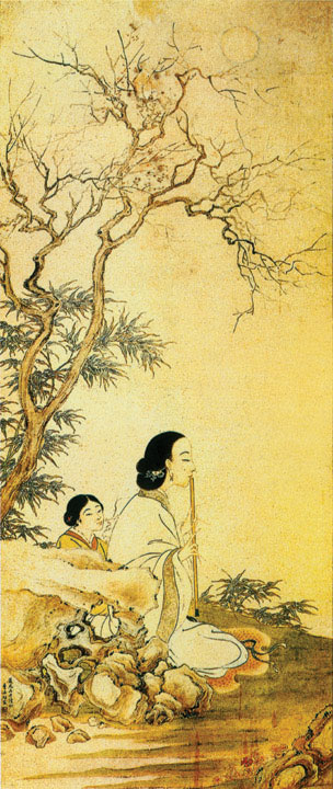 (右:月下吹萧图)我在夜里读完《子夜歌》,如同喝了一杯香馥却冷掉的花茶。抬头看见窗外星河斑斓,别有凉意,一时黯黯无言。心里缠绵悱恻地难受,像“子夜”这个带着浓烈芬芳的忧伤名字突然之间在暗夜里花开如树,惊艳寂寞。 “《子夜歌》云是晋女子所作,似五言绝句,分春歌,夏歌、秋歌、冬歌。日本俳句分春、夏、秋、冬,即是受了《子夜歌》的影响。 《子夜歌》的春歌第一首: 春林花多媚,春鸟意多哀。春风复多情,吹我罗裳开。 气氛舒畅广大,几乎是没有特定的对象的情思。春风要算得挑拨了,然而有一个和字,更一个惠字,凡此皆非西洋文学里所有。” ——节自胡兰成《中国文学史话》 我对《子夜歌》的印象最初来自胡兰成。他仿佛对《子夜歌》别有钟情,除了在《今生今世》一再引用、申变,后来又在《中国文学史话》里多次提及,大谈《子夜歌》的气韵和好处,用来比较中国人的亲、爱,和西洋人恋爱之间的深浅差别。我是爱惨了他的文字和才气,于是老老实实读下来,斑斑点点落在心里。后来去看《子夜歌》,发现胡兰成论中国的诗词文化,真是像深入到精神内核里再绽放出来的花千树,猝然而深远。 曾经,听到一个关于《子夜歌》的凄艳的传说。相传东晋孝武帝时,大臣王轲之家里发生过鬼唱《子夜歌》的事。这件事见载于《宋书·乐志》:“晋孝武太元中,琅琊王轲之家有鬼歌子夜。殷允为豫章,豫章侨人庾僧虔家亦有鬼歌子夜。”殷允为豫章太守也是晋武帝太元年间的事,如果那时就传说有鬼在夜里唱《子夜歌》,那子夜肯定是东晋以前的女子。 《旧唐书·乐志》里也说:“《子夜歌》者,晋曲也。晋有女子名子夜,造此声,声过哀苦。”所以我就一直在想,是什么样的哀戚,能直通幽冥,让身在寒泉的鬼,也感到悲伤呢? 直到我读了《子夜歌》,才知道《子夜歌》里其实也有很多欢愉明亮的色彩。一个男子在路上等到爱慕的女子,赞她容色艳丽,满路遗香。男子说,你一来路上都芬芳了,女子(也许就是子夜吧)又欢喜又妥当地回答:“芳是香所为,冶容不敢当。天不绝人愿,故使侬见郎。” 这是多么漂亮且精当的回答。她不说自己不好,却也不过分的骄傲,只那样谦卑和顺地说一句:“天不绝人愿,故使侬见郎。”情切切,意绵绵,十个字像蜷曲的玫瑰花苞,深深浅浅牵住了情郎的心,更藏住了“缘由天定,爱是天意”的禅意在里面。 彼时,爱也不是爱,遇也未曾遇,像新春初至,花树未发的萌萌意思,一切都还是无立足境。你我,没有后来的抵足交缠,还是个清净自在身。 《子夜歌》里唱到:“天不绝人愿,故使侬见郎。”汉乐府里女子发誓亦要说——上邪!中国人是敬天的,尤其男女之事爱讲个天意,天作之合,天成佳偶,天生的冤家……世间万物,花木山河,连人的本真也是唯天所授,所以接受起来恭谨和顺。 这样的柔和贞顺,在今人的身上渐渐缺失了,我们越来越愿意相信自我的力量,以为可以改变很多事,到头来依然没入命运的漩涡;越来越爱做深刻的思考,却越来越远离纯真,不能与自然作最纯粹直接的交流。 于是,人类一思考,上帝就发笑。有时候,是我们自己决定了自己棋子的命运。 爱看她对情郎撒娇:“宿昔不梳头,丝发披两肩。婉伸郎膝上,何处不可怜!”我忍不住微笑,似乎可以看见那种娇憨依恋。她说,你离去以后,我无心梳洗,就这样的潦草而过,看你看到我这样子会不会心疼? 她丝缎一般的长发随意洒落在肩头,像乖巧的猫儿一样伏在他的膝上,任情郎盘弄抚摸。长发被他缠绵翻飞的手指牵引。但即使是那样的嫣婉及良时,为什么笑容甜美的她,眉目间仍有深深地忧伤,不时在心底泛滥成灾? 快乐总是短暂的,忧伤才是人类命中的毒瘤,随血液生衍,无休无息,某些时候会变得凶猛,不可遏制。很心疼《子夜歌》里的那个美丽女子,春花秋月何时了,她简直无时无刻不在忧虑着。 从表现的情绪来说,南朝民歌中欢娱之辞所占比例很小,其基调都是哀伤的。这一方面因为在浪漫的、非礼教约束的爱情关系中,受阻被隔,空怀相思,或一晌贪欢,转首负情,是常有的事,爱情的失意,容易形成悲伤的基调。这点忧愁在《子夜歌》里有深刻的阐释。 是女子天生比男人多心多敏感?还是大家都已一早窥测到结局的荒凉?只是男人通常选择沉默着不说,在某一日冷静地接受结局? “揽枕北窗卧,郎来就侬嬉。小喜多唐突,相怜能几时?”读到这里我才恍然:原来,当“唐突”的“小喜”过去后,“相怜能几时?”才是她忧虑的根本。女心贪婪,容易眷恋。所以为爱情能否天长地久而烦恼的多半是女人,男人对此常常洒脱得出乎意料。可是,依旧是爱你的时候多,因为相思,忘却自身的时候多,因为是女子,到底是女子。 “白露朝夕生,秋风凄长夜。忆郎须寒服,乘月捣白素。”——在白露降临的秋夜里,想起你缺少御寒的衣物,于是再也睡不稳,起身在明亮寒冷的月光下,为你捣素制衣。想把千丝万缕的情愫织进衣里,让你穿在身上会有融融暖意。 “夜长不得眠,明月何灼灼。想闻散唤声,虚应空中诺。”——黑夜是如此漫长,我不能够入睡。看见窗外明月皎洁,想着你在天涯那端,满心茫然。突然听见你在叫我,忙忙地应了一声,却不过是我太思念你而出现的幻觉。 爱是生命里最绚烂的一场幻觉,太荼蘼,有时,走完天涯道路,也不愿醒来。 读《子夜歌》在深夜。静默安然的心之花园里,突然飘来夜来香的