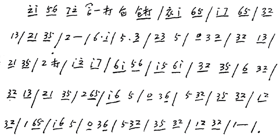 我突然地就在七里沟口瞧见了白雪。白雪是顺着312国道中间的那条白线往前走的,她在训练她的腿,以免成八字步。我就从七里沟跑了出来。我开始实施我的计划了,没有在白雪的身后追,那样会吓坏她的。我上了国道边的庄稼地里拼命地跑,跑过了白雪,然后从庄稼地里下来,潜伏在国道边的一丛茅草中。白雪过来了,她还是微笑着,走着猫一样的步子,屁股一拧一拧的。我忽地跳了出来,像电影里那些强盗,不,是侠客,跳出来还做了一个威武的动作。白雪呀地一声吓着了。白雪受惊的样子真是叫人心疼,她的嘴张着,手在空中抓了一下,就举在那里。我极快地从怀里掏,掏出来的是一双破手套,掏错了,再掏,就掏出了小手帕,在白雪的脸前晃。我听见白雪说:“你干啥,干啥?”我只是晃,白雪脸上的肌肉就僵起来,目光呆滞了。我说:“宏声,我成功了!”转身就走。回头一看,白雪果真也跟着我走,我走多快她走多快,像我的影子,或者像我牵着的木偶。我们走过了整个清风街,清风街的人都注目着我。我拿脚踢了一片树叶,树叶踢飞了,再踢一片树叶,那不是树叶,是颜色像树叶的一块石头,把我的脚趾甲踢掉了,我不嫌疼,继续走。人群里有白恩杰,有丁霸槽,也有张顺和三踅,他们都没有说话。我知道这是他们惊讶得说不出话,也嫉妒得说不出话。我微笑着给人群点头,皇帝也都是这样的。我们走到了我家的院子,进了堂屋,上到炕上,白雪平平坦坦地躺着了。等到白雪躺在了我的炕上,我却不敢去碰她了,就坐在炕沿上一眼一眼看她,担心她是个香草,我气一出粗,香草就飞了。我伸出了手去摸了一下她的脚,脚腻腻的,柔得像婴儿的屁股,但有些凉,像一疙瘩雪,但我从头到脚却火烫火烫的,我又担心再摸她,雪就要化了。我让白雪静静地躺在炕上,她一直昏睡着,我希望她永远就是个睡美人躺在那里。我坐在了门口,不让任何人进屋,连苍蝇蚊子都不能进去。榆树上下来了一只蜜蜂,它硬要进去,把我的头蛰了,它在拔屁股上的毒刺时把半个身子拔掉了,它也死了。我连续三天再没去七里沟,夏天义以为我患了病,寻到了我家,他看见我好好地在屋门口,说:“你在家干啥哩?”我拿眼瞧着土炕,没说话,只是笑。夏天义就走过去揭土炕上的被子,被子揭开了什么也没有。我却是扑过去抱住了夏天义,我不让揭开被子,甚至不让他靠近土炕。夏天义说:“你又犯疯病啦?!”我叫道:“你不要撵她!”夏天义说:“撵谁?”啪啪扇我两个耳光,我坐在那里是不动弹了,半天清醒过来,我才明白白雪压根儿就没有在我的土炕上。我说:“天义叔!”呜呜地哭。 夏天义拉着我再往七里沟去,我像个逃学的小学生,不情愿又没办法,被他一路扯着。刚走到东街口牌楼下,有人在说:“二伯!”我抬起头来,路边站着的正是白雪。这个白雪是不是真的?我用手掐了掐我的腿,疼疼的。夏天义说:“你去你娘那儿了?”白雪说:“我到商店买了一节花布。”我一下子挣脱了夏天义的手,跳在了白雪的面前,将那小白帕按在了她的鼻子上。白雪啊地叫了一声,跌坐在地上。夏天义立即将我推开,又踢了一脚,骂道:“你,你狗日的!”一边把白雪拉起来,说:“你快回去,这引生疯了!” 在我的一生中,这算是第二次最丢人的事了!但我没有恨白雪,也没有恨夏天义,我除了恨我外,就骂赵宏声是个骗子,骗子,大骗子!当天夜里我就去了大清堂追要那块桐木板,他乖乖地把桐木板还给了我,我还拼劲地拿脚在他家墙上踹了一脚。现在那个脏脚印还在,离地面一米高。 足足有一个礼拜,我看太阳都是黑的。真的是黑的。白雪是不是也看太阳是黑的,这我不晓得。那个晚上天下大雨,我独自进了七里沟,连续在七里沟的草棚里住着不回清风街。那棵麦,还记得吧,它的麦秆差不多指头粗,三尺高了,谁在哪儿见过这样粗壮的麦子呢?我坐在桌子下面,和旁边那树上的鸟儿说话。鸟儿说:“喳!”我说:“咋?”鸟说:“喳喳!”我说:“娃娃?”鸟说:“喳喳喳!”我说:“谁的娃娃?”鸟说:“喳喳——喳喳喳!”我听不懂了。夏天义来了,他给我提了一瓦罐饭,说:“你狗日的没回去着好,回去了夏雨便把你打死的!”我说:“他凭啥打我?”夏天义说:“白雪早产了!”我吓得脸色苍白,天哪,是我惊吓得她早产了吗?孩子是几个月的,早产是活着还是死了,白雪又会怎么样?夏天义说:“还好,她们母女都没事,只是那孩子瘦小得像个老鼠。”夏天义这么说,我松了一口气,双腿就软得再也撑不起身子,稀泥一样地瘫在地上。 我拼命地掮石头,我想用超负荷的劳动来惩罚我,但一个大老鼠的模样总往脑子里钻。我想象那孩子瘦胳膊瘦腿的,脑袋挺大,眼睛细眯,一对招风耳。白雪好看得像一朵花,她的女儿却长成那么丑,我也搞不清怎么会有这种想法?但当时确实是这么个想法。待到真正见到那孩子的时候,孩子的长相和我的想象几乎一模一样,让我非常惊奇。这当然都是后话了。我要说的是白雪从地上爬起来,小跑到家,心还扑通扑通跳,当时就上床睡下了。四婶在厨房里摘菜,听着卧屋里夏天智播放秦腔曲牌,先播的是《风入松》,再播的是《凡婆躁》,然后就是怪怪的一段曲子: ![]() 四婶说:“这是啥曲子,听着不舒服!”夏天智在卧屋说:“你行呀,还能听出这曲牌不舒服,这是《甘州歌》,专门是鬼魂上场用的。”四婶说:“你快把机子关了,你招鬼上门呀?!”夏天智没关,说:“傻呀你,这是艺术!”还跟着哼起来