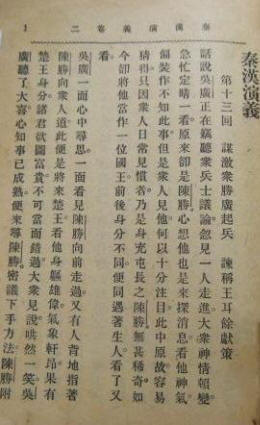 秦汉演义,4册48回。题永泰黄士恒著。民国6年(1917年)5月,商务印书馆初版。又名《秦史演义》,网上多称《秦朝野史》。 本书叙述从秦始皇统一天下,到汉王朝建立。主要讲秦汉之际楚汉相争故事。文字通俗易懂、文笔流畅。民国时曾再版多次。 黄士恒,清末民初,福州永泰人,生平不详。光绪三十年十二月(1905年1月)前后,与兄弟黄士复捐资创办西城两等小学堂,并自任堂长。