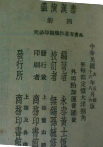 ↑秦汉演义,民国6年5月初版、民国16年8月6版