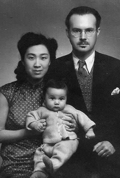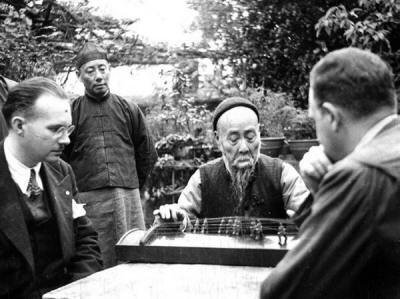 高罗佩观琴中(左) 高罗佩与夫人及儿女们